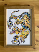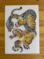Tiger snake fight white Background